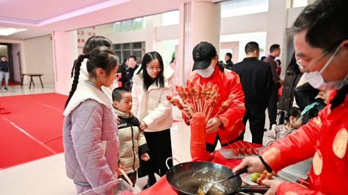除了好玩的游戏,现场还准备了丰盛的美食。冰糖葫芦和棉花糖制作区排起了长队,孩子们看着糖浆在工作人员手中变幻出各种形状,兴奋不已。现场还贴心准备了糕点、烤肠和茶水等,供大家随时取用,补充能量。