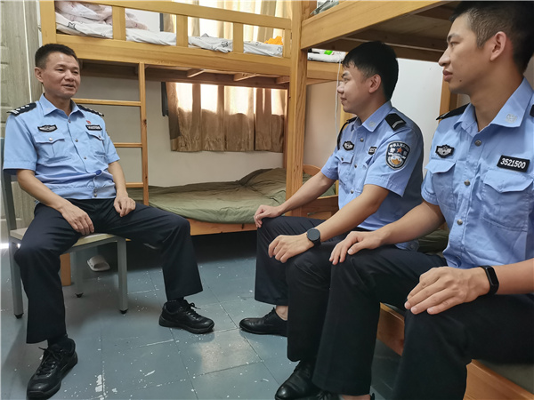 暖警爱警,“为民办事”落实处。越是封闭期间,越是不能忘记关心关爱民警。针对本批次民警的情况,监区带队领导深入各备勤点与民警拉家常、话里短,询问民警生活上的困难,引导大家要克服生活上的不便,时常到宿舍参与茶话会,与大家交心谈心。当了解到个别民警家中有困难时,主动联系监区机动人员带领监区志愿者,为执勤民警解决后顾之忧。今年刚参加工作的95后民警林嘉豪表示,以前总觉得跟领导有距离感,接触过后其实就像贴心的老大哥。