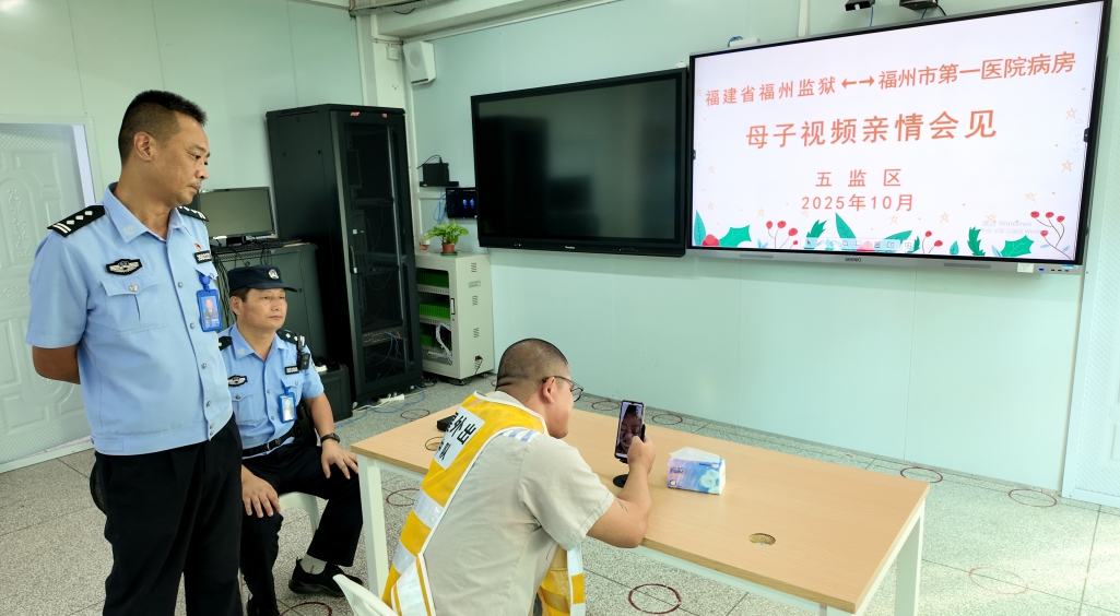 这是10月17日,发生在福州监狱“多媒体教室”“母子视频亲情会见”的一幕场景。