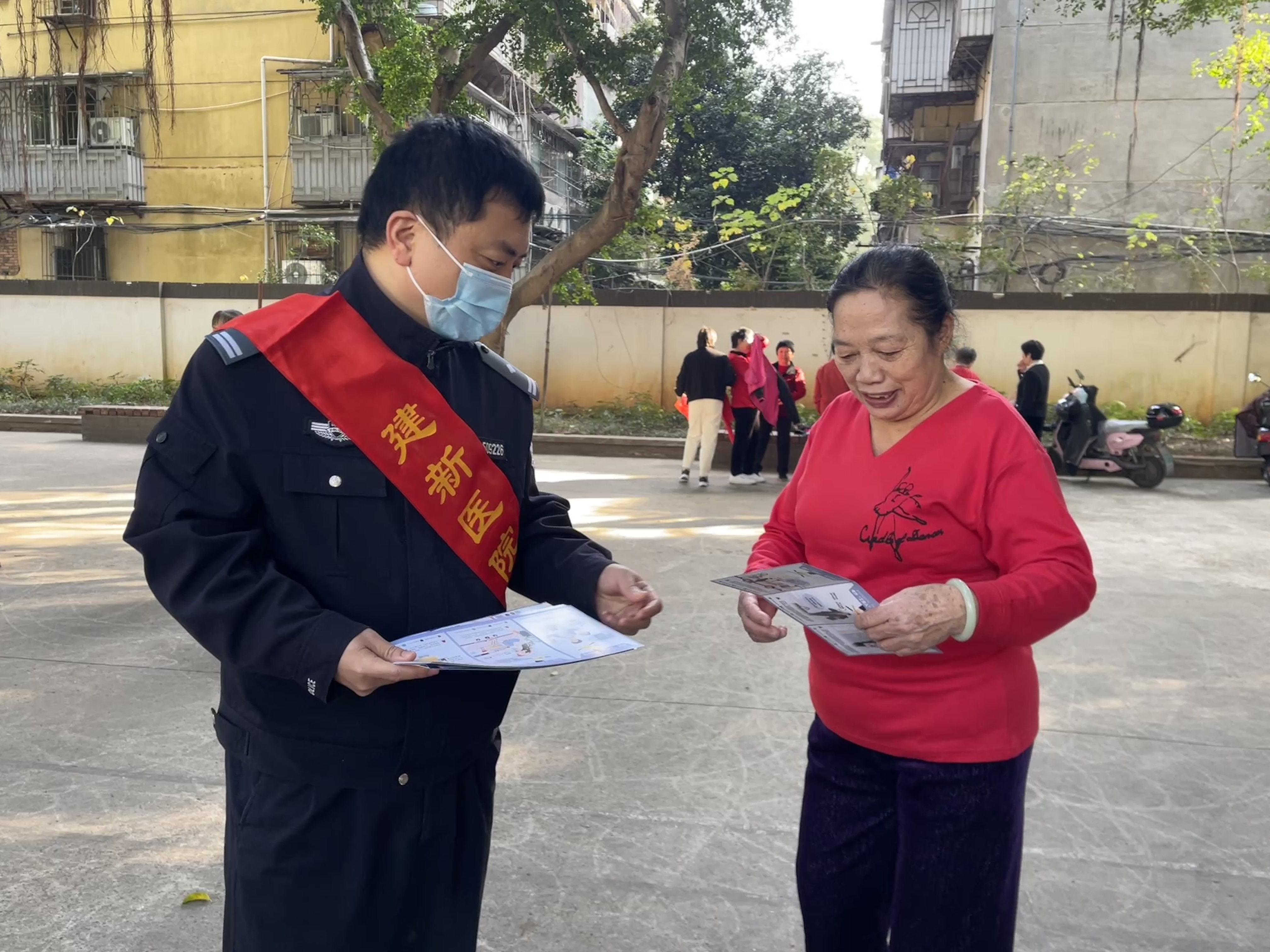 活动现场,医院民警充分发挥普法宣传主力军作用,在视频播放区循环播放《“大家”说宪法》公益宣传片及最新反电信网络诈骗警示教育短片,以生动的视听形式吸引居民驻足观看。观看结束后,民警结合视频内容,围绕宪法赋予公民的基本权利与义务、日常生活中高频法律风险以及当前高发诈骗手法识别等内容,进行了面对面的深入讲解。同时,民警们积极向社区居民发放自行编印的《防范电信网络诈骗手册》等普法折页资料,切实引导居民知法、懂法、守法、用法。