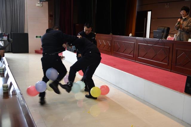 此外,授课还加入了 “定时炸弹”“踩爆气球”等互动环节,在轻松愉悦的游戏氛围中,民警们迅速拉近彼此之间的距离,从而进一步放松身心,释放压力。