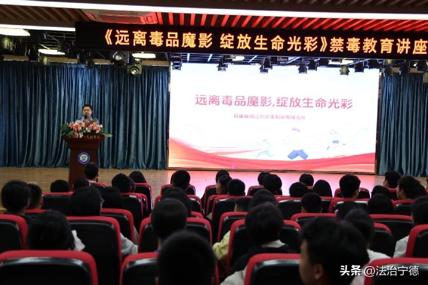 当日下午,普法课堂同步走进驻地宁德市蕉城区第二实验学校。闽江戒毒所民警以“远离毒品魔影,绽放生命光彩”为主题,为初中年段4个班级的200余名学生带来生动讲座。民警结合青少年认知特点,播放毒品危害视频短片、开展“法治知识问答”,用通俗语言讲解新型毒品的伪装形式、青少年涉毒违法的后果,引导学生主动远离毒品诱惑,树立“知法于心、守法于行”的意识。
