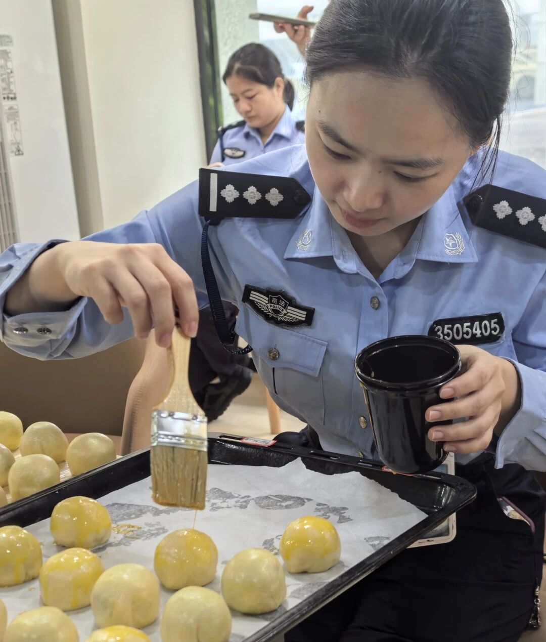 中秋佳节本是团圆之时,民警们围在烤箱旁,紧盯温度变化,更懂 “坚守” 的意义:低温慢烤的耐心,象征着面对节日 “人情陷阱” 时的冷静克制,不急于求成、不贪图捷径;适时调整温度的细心,代表着对节日期间工作风险的敏锐察觉,及时纠正偏差、防范隐患。