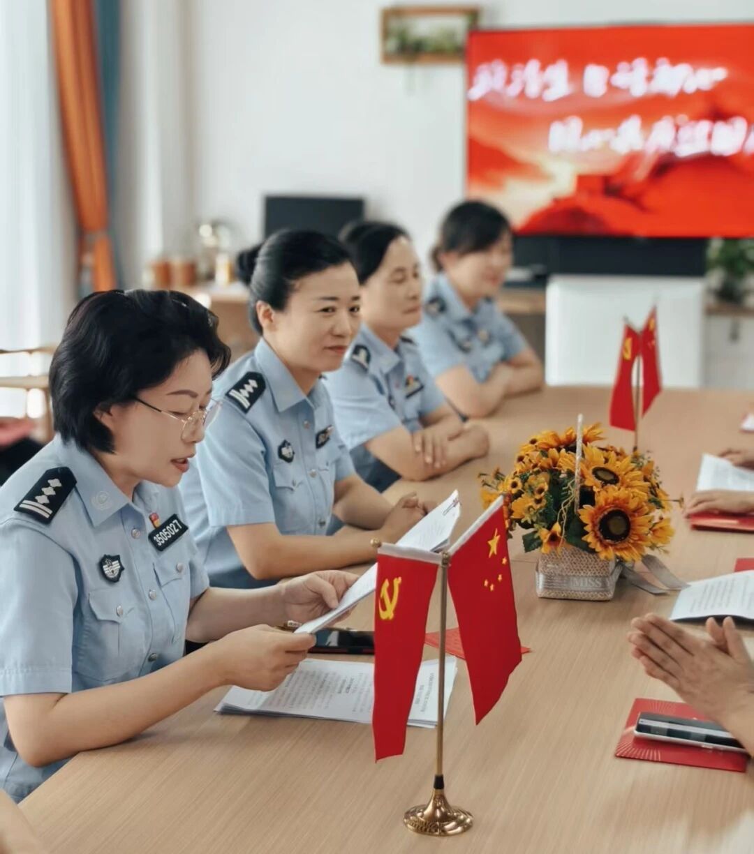 一份精心准备的“政治生日”贺卡,承载着组织的殷切期望,递到党员民警手中。仪式感拉满的环节,瞬间将大家的思绪带回到当初宣誓入党的光荣时刻。