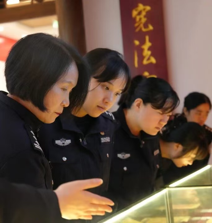 民警们循着时间轴线,系统梳理宪法制定与五次修正的发展历程,从条文演变中深刻体会宪法作为国家根本大法的稳定性与时代适应性;在习近平法治思想展区,通过图文展板、视频短片直观感受其在福建的孕育、发展与实践轨迹,尤其是仿福州“三坊七巷”打造的 “法巷”,青砖黛瓦间融入法治典故与八闽法治人物事迹,让大家在沉浸式场景中领略八闽大地深厚的法治文化积淀。