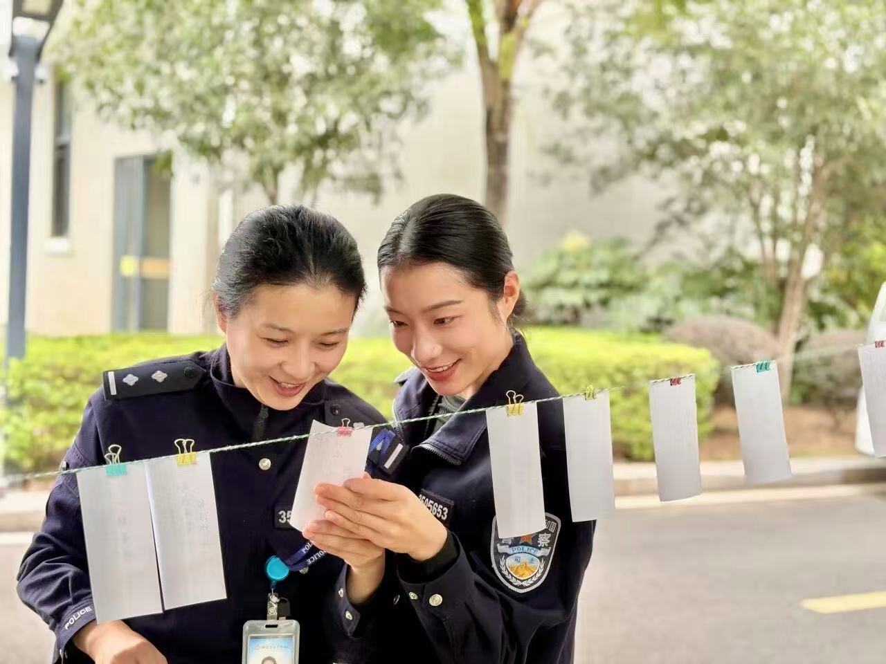 活动现场,一张张印着题目的纸条悬挂展示、错落排布,民警们自由驻足、自主挑选题目挑战,氛围轻松又热烈。答对的民警开心地领取小礼物,互相交流题目涉及的法律要点,在互动中夯实知识点;答错的则通过朗诵宪法条文、结合岗位谈理解的“补学”形式闯关,全程充满参与感。