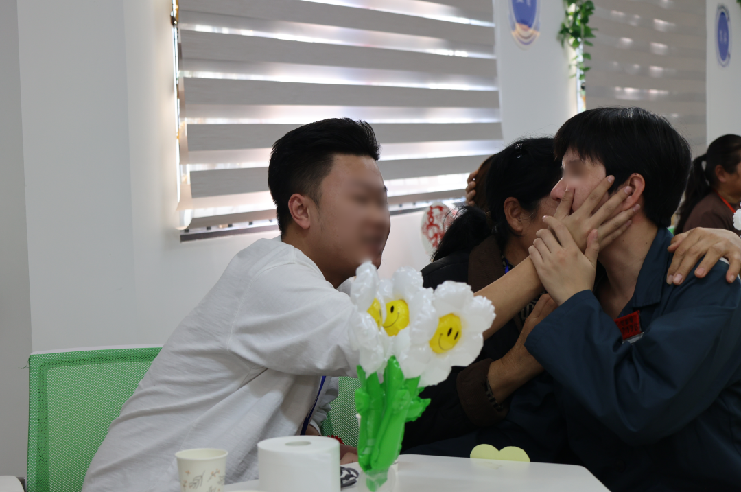 活动伊始,罪犯家属讲述了各自家庭的温情时光。蒙住双眼的罪犯静静地听着家人倾诉爱的心声,再通过辨认家人说话的声音,找到自己的家人。当听到爸爸妈妈说:“你永远是我们的女儿,我们等你回家”,李犯的眼泪决堤,内心的不安与顾虑也悄然消散,志愿者牵着她走到家人的身边,温暖又紧实的拥抱让这个家靠得更近。
