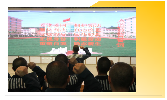 在“法治第一课”的最后阶段,都开展隆重的入监政治改造仪式,用满满的仪式感激励罪犯洗心革面、从头再来。在一次政治改造仪式上,罪犯代表吴某某做表态发言时,深有感触地说:“刚入监的我们都很茫然,‘法治第一课’让我们认识了自己的错误,也为今后的改造指明了方向。我现在知道违法、犯罪的事一定不能做,我一定要爱国爱党,自觉做一个守法公民”。