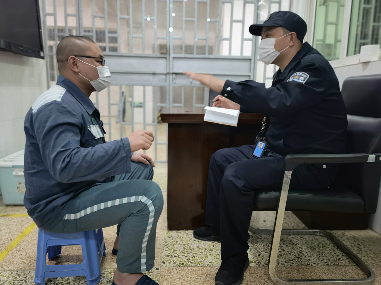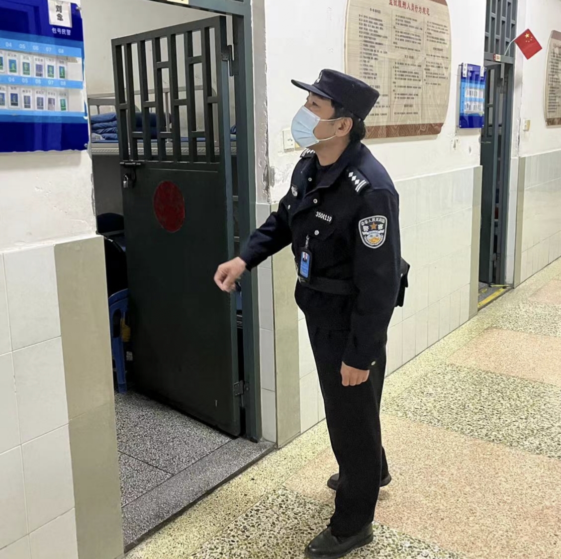 清晨起床号声还未响起,民警王志林已经穿戴整齐,走进监舍,开始一天的封闭执勤工作。明年9月退休的他,从未以“老同志”自居,这次遇延迟换防,他和战友们奋战在第一线。在年轻民警眼里,王志林不仅是工作上的良师,也是生活里的益友。作为老大哥,他经常找年轻人谈谈心,分享一些风趣幽默的精神食粮,让在监内封闭执勤的大家心里踏实很多。