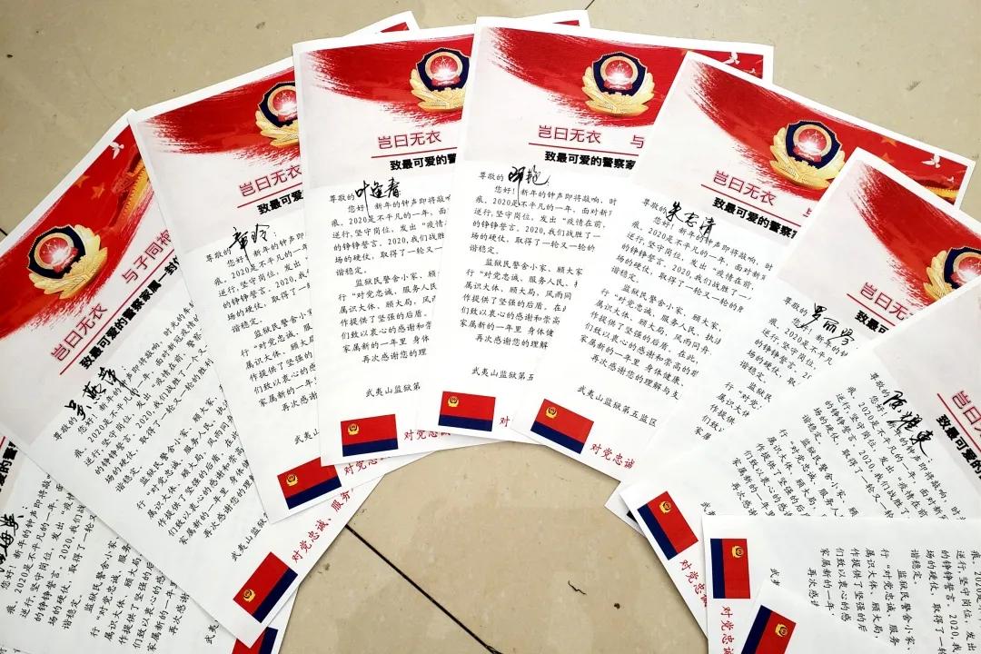 一封封意义非凡的慰问信,错落有致的排版、真挚的语言、细腻的纸质、鲜艳的警旗……让民警家属感到暖心。为积极营造“以人为本”的工作氛围,增强民警的归属感和凝聚力,五监区监区长林斌在大年三十致电封闭执勤的民警家属,感谢他们的支持与理解,并送上诚挚的祝福。