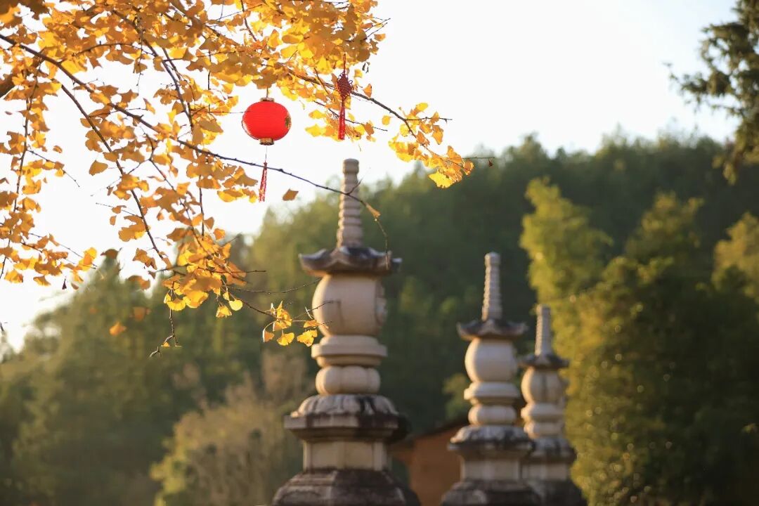 古寺门前,千年银杏满树金黄,醉了冬天,醉了游人。金色的树叶与墙角的菊花相映成趣,分不清是秋的执着还是冬的宽容。僧人们扫落阶前的落叶,堆积的叶片层层叠叠,踩上去沙沙作响,那是秋的余音在山野间回荡。