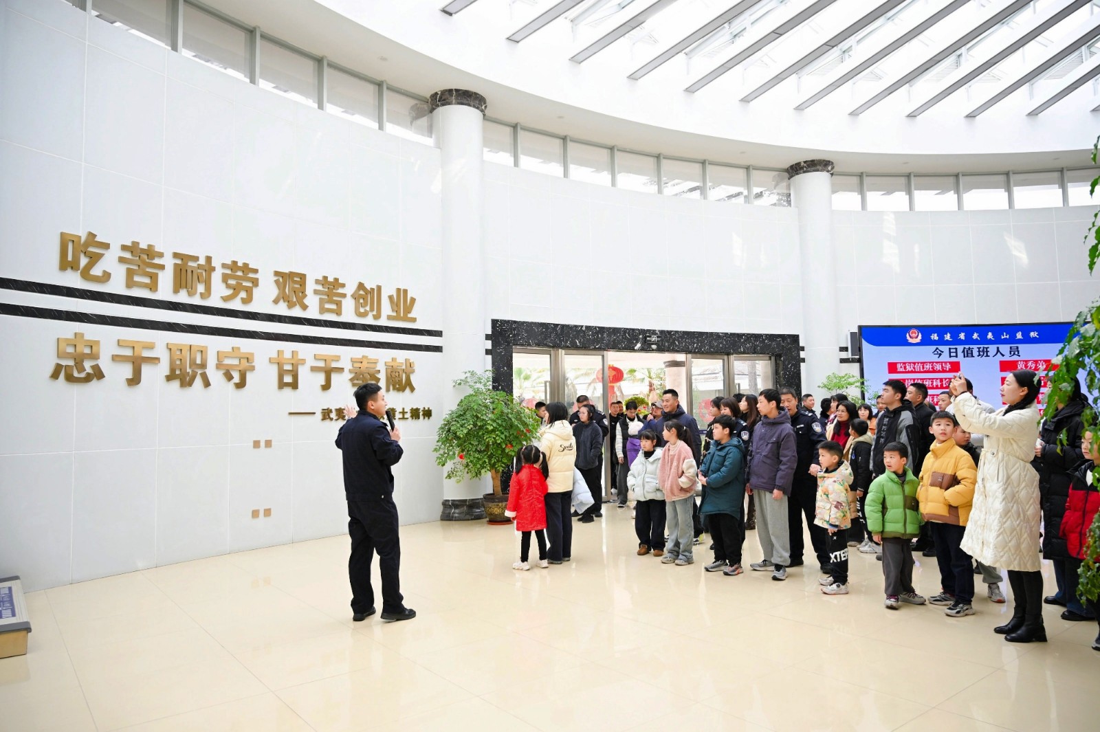 活动首章是温情满满的“藏蓝守岁 警民同心”警营开放日参观活动。在引导员的带领讲解下,近100名家属先后走进监狱办公区、“紫峰阁”民警书吧、警体训练中心等功能区域,实地探访民警日常工作、训练与文化生活的真实场景,直观感受监狱在队伍建设、警营文化打造上的用心与成效。