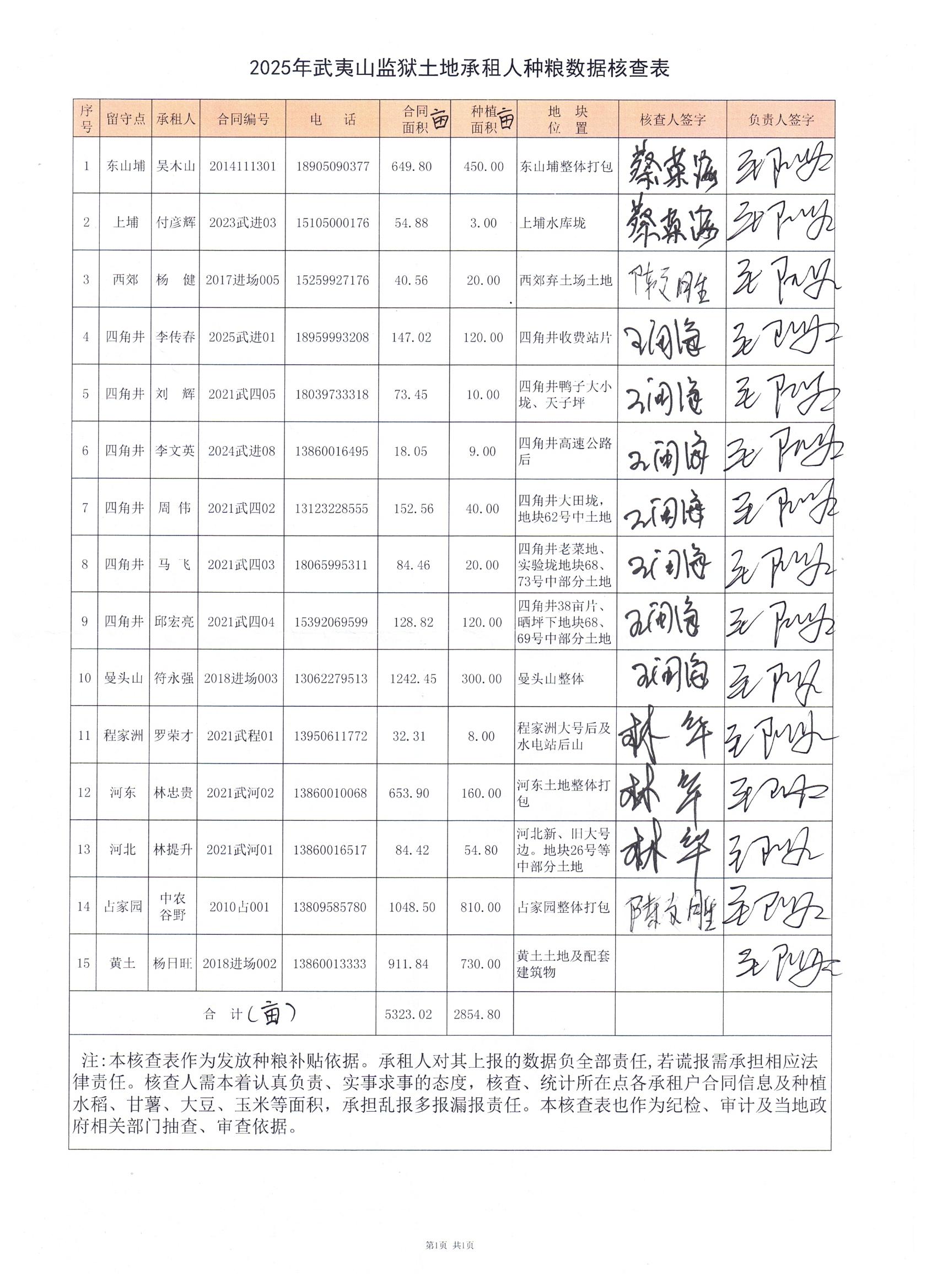 根据国家种粮补贴规定,现将我监土地承租人有关国家种粮补贴作物面积核查情况予以公示,请监督。