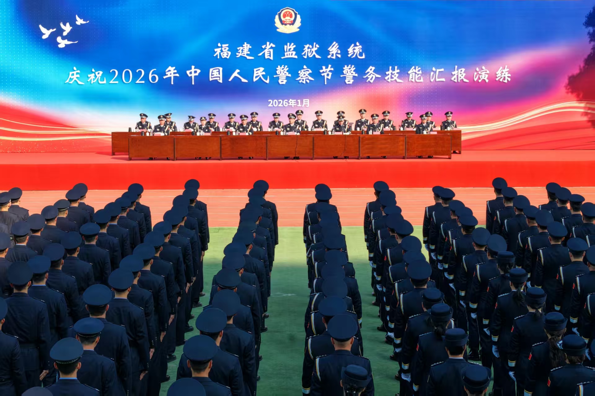 1月9日,全省监狱系统庆祝2026年中国人民警察节暨警务技能汇报演练活动在省司法警察训练总队隆重举办。本次活动以“警心永向党 奋进新征程”为主题,聚焦新时代监狱工作职责使命,通过开展警务技能汇报演练、发布文化建设成果、举办荣誉仪式等形式,集中展现监狱民警的实战能力、专业素养和昂扬斗志。