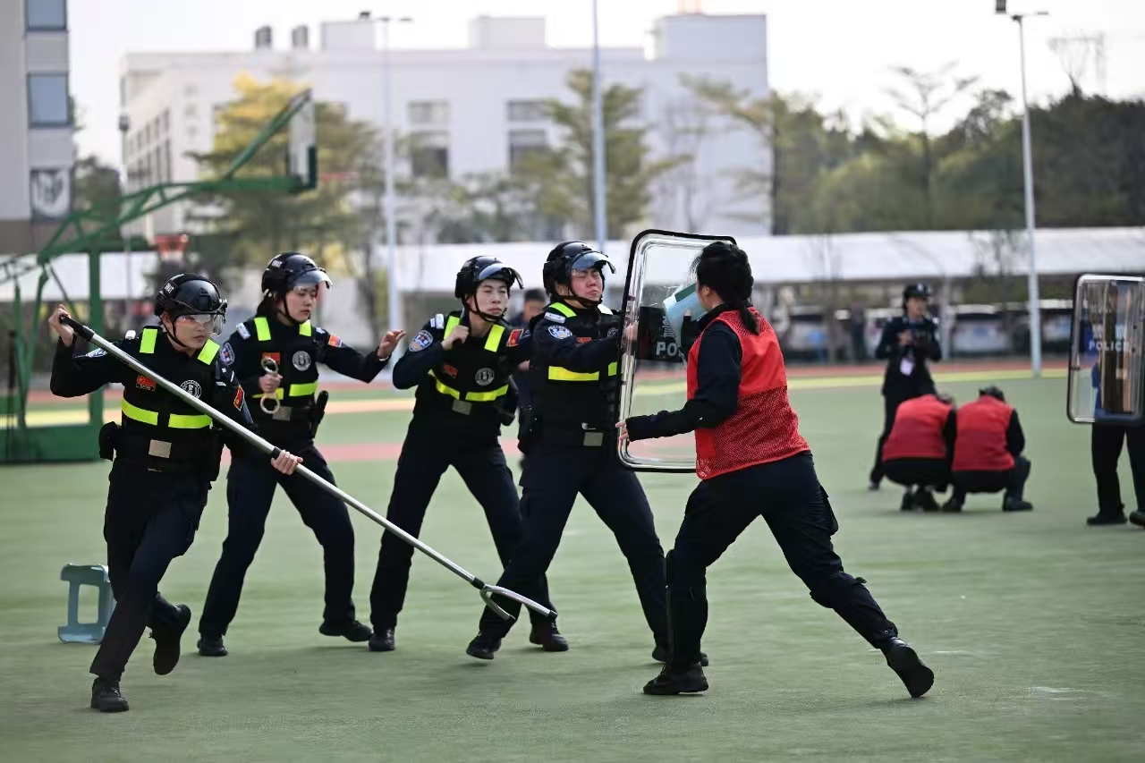 警徽熠熠生辉,警旗猎猎飘扬。汇报演练现场,民警警容严整、队列整齐、步伐铿锵。他们展示的擒敌拳、警棍盾牌操、防控技能、警务技能战术操、防暴队形、现场处置等科目展演,动静之间体现的是攻防转换的智慧,开合之际凸显的是团队的协作默契,以昂扬姿态彰显了新时代监狱人民警察忠于使命、敢于担当作为的精神风貌。