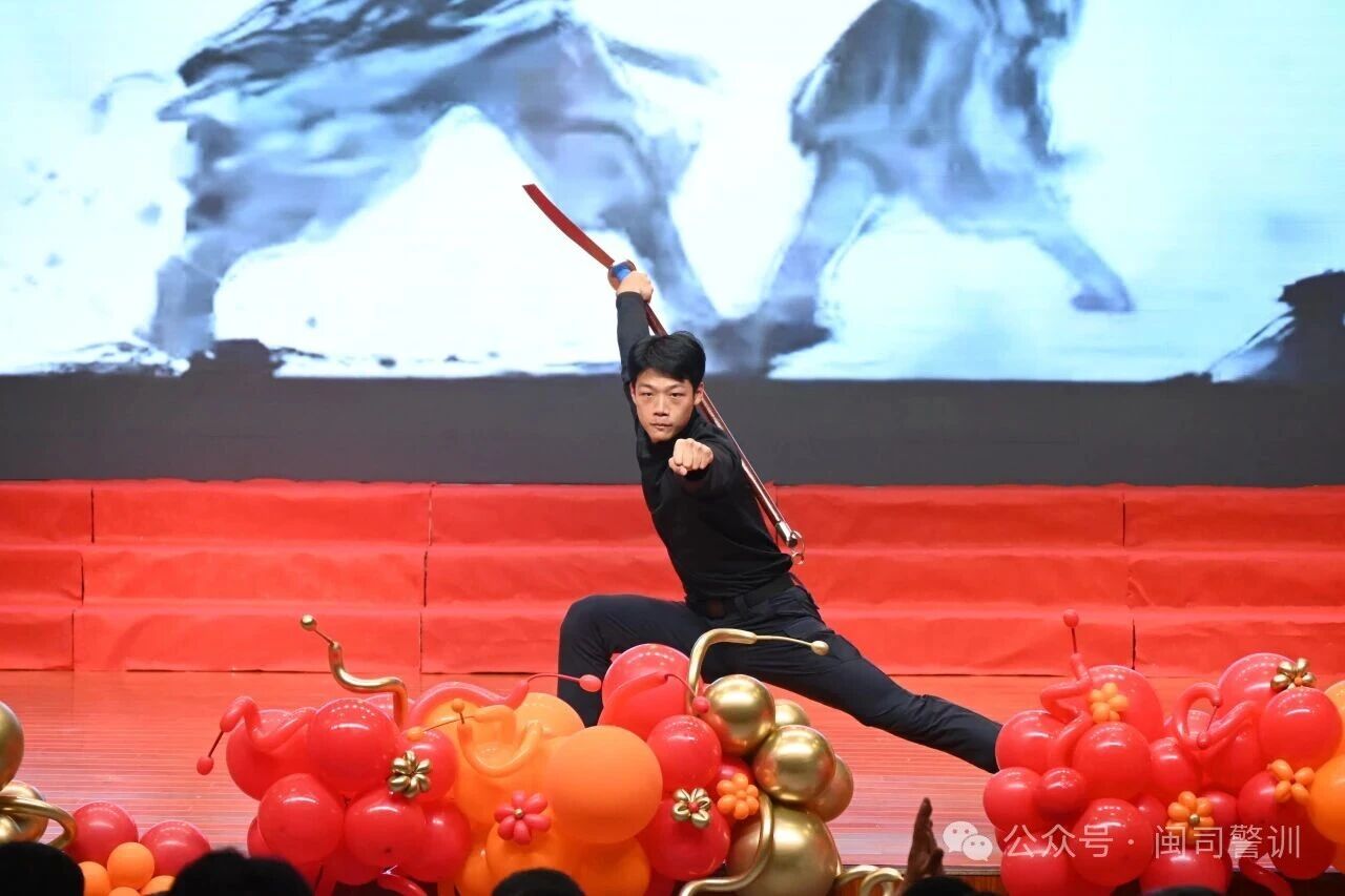 悠扬旋律奏响新春序曲,精彩节目演绎警营风采。本次团拜会的文艺演出环节内容丰富、形式多样,歌曲、舞蹈、武术表演等节目轮番上演,为现场观众带来了精彩纷呈的视听盛宴。由五星合唱团带来的《掀起你的盖头来》《美丽的草原我的家》两首合唱曲目旋律优美、点燃现场氛围;竹笛独奏《醉笛》,笛声婉转悠扬,尽显传统乐器之美;舞蹈《鸳鸯戏》轻盈曼妙,将美好寓意融入灵动舞姿;独唱《天边》、男女对唱《月亮舞台》,用深情歌声传递新春美好;武术表演加实战演练《势启山河》,动作刚劲有力、整齐划一,尽显勃发英姿和过硬本领;独唱《幸福中国一起走》、舞蹈《岁月回声》,歌声动人、舞姿优美,传递出对祖国、对生活的美好赞颂;乐器合奏《一帘幽梦》旋律悠扬,独唱《车站》深情款款,五星合唱团压轴合唱《爱永在》《领航》更是将演出氛围推向顶峰……最后全体人员齐声高唱《中国人民警察警歌》,铿锵有力的歌声彰显出人民警察的使命与担当,赢得现场阵阵喝彩。