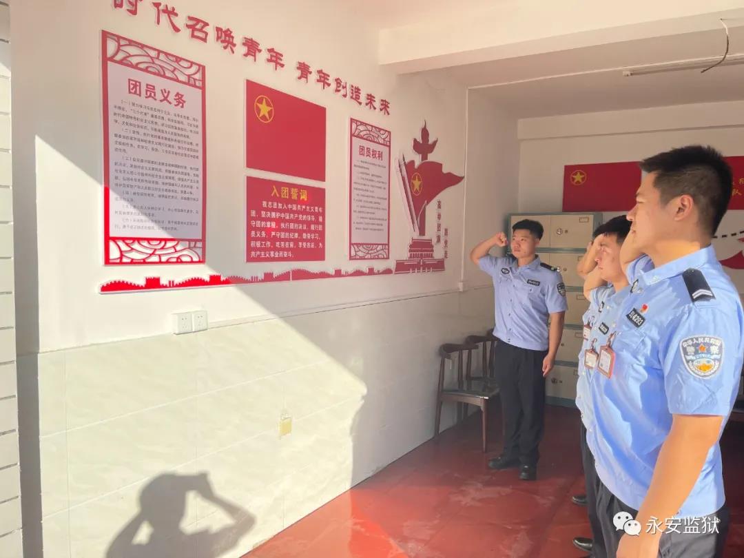 为大力弘扬伟大的五四精神,结合党史学习教育以及队伍教育整顿教育活动,永安监狱在团员活动中心为新录用民警举行了“重温入团誓词,高举团旗跟党走”主题教育活动。