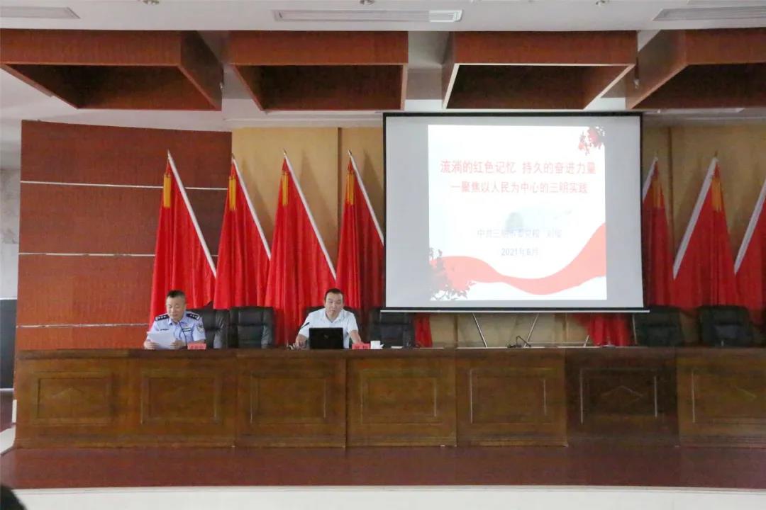 刘俊老师从过去和未来两个方面,讲述了三明在历史上是中央苏区的核心区,是中央红军长征的出发地,是红旗不倒的革命根据地,是伟人革命的重要实践地由来的深刻内涵,进一步增强民警职工对中国共产党为什么“能”、马克思主义为什么“行”、中国特色社会主义为什么“好”的认知;阐述了三明坚持正确方向,一张蓝图绘到底;坚持人民至上,托起群众的笑脸;坚持自我革命,善用改革开新局的新发展方向攻坚克难,迎难而上推动经济社会发展。刘俊老师还以详实具体的党史事件深刻阐明了长期以来三明广大干部群众牢记重要嘱托,一以贯之、坚定不移贯彻落实新思想新理念,勇于改革创新,敢于攻坚克难,在条件并不优越的情况下,探索符合自身实际的发展路子,不断增强人民群众的获得感、幸福感、安全感。
