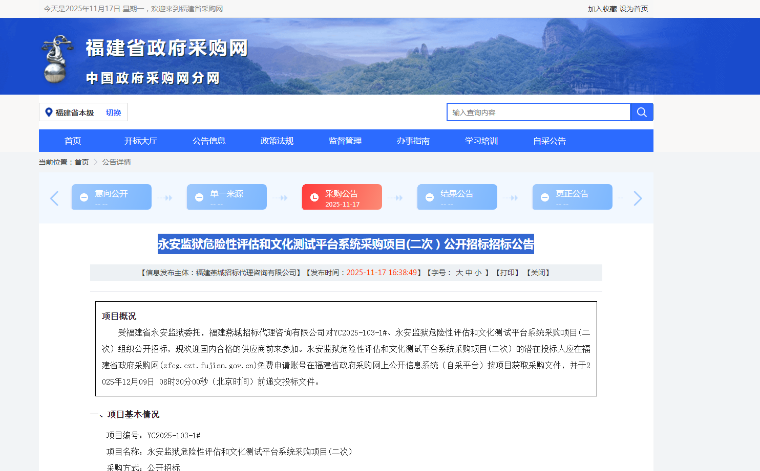 永安监狱危险性评估和文化测试平台系统采购项目(二次)公开招标招标公告