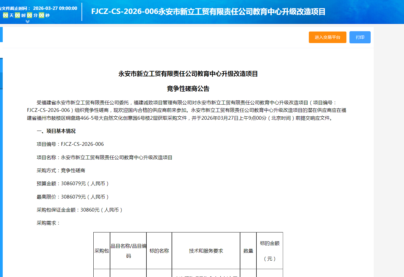 永安市新立工贸有限责任公司教育中心升级改造项目竞争性磋商公告