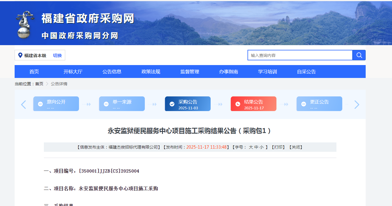 永安监狱便民服务中心项目施工采购结果公告(采购包1)