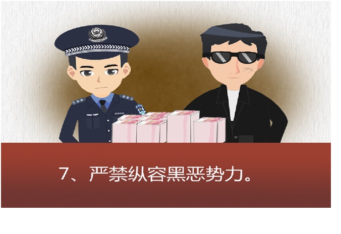 决不允许对黑恶行为视而不见、听之任之,纵容涉黑涉恶活动,充当“保护伞”。