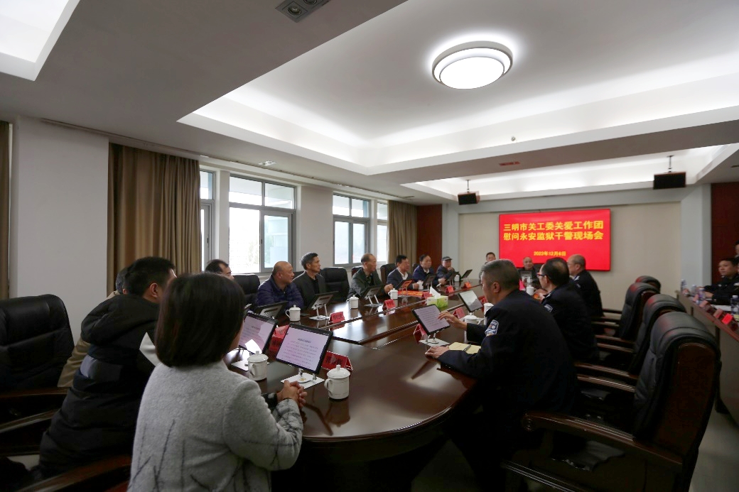 永安监狱党委副书记、政委、关工委主任池斌代表监狱党委欢迎三明市关工委一行,感谢三明市关工委长期以来对监狱民警的关心和监狱关工委工作的大力支持,并向三明市关工委汇报了近年来永安监狱关工委的工作开展情况。