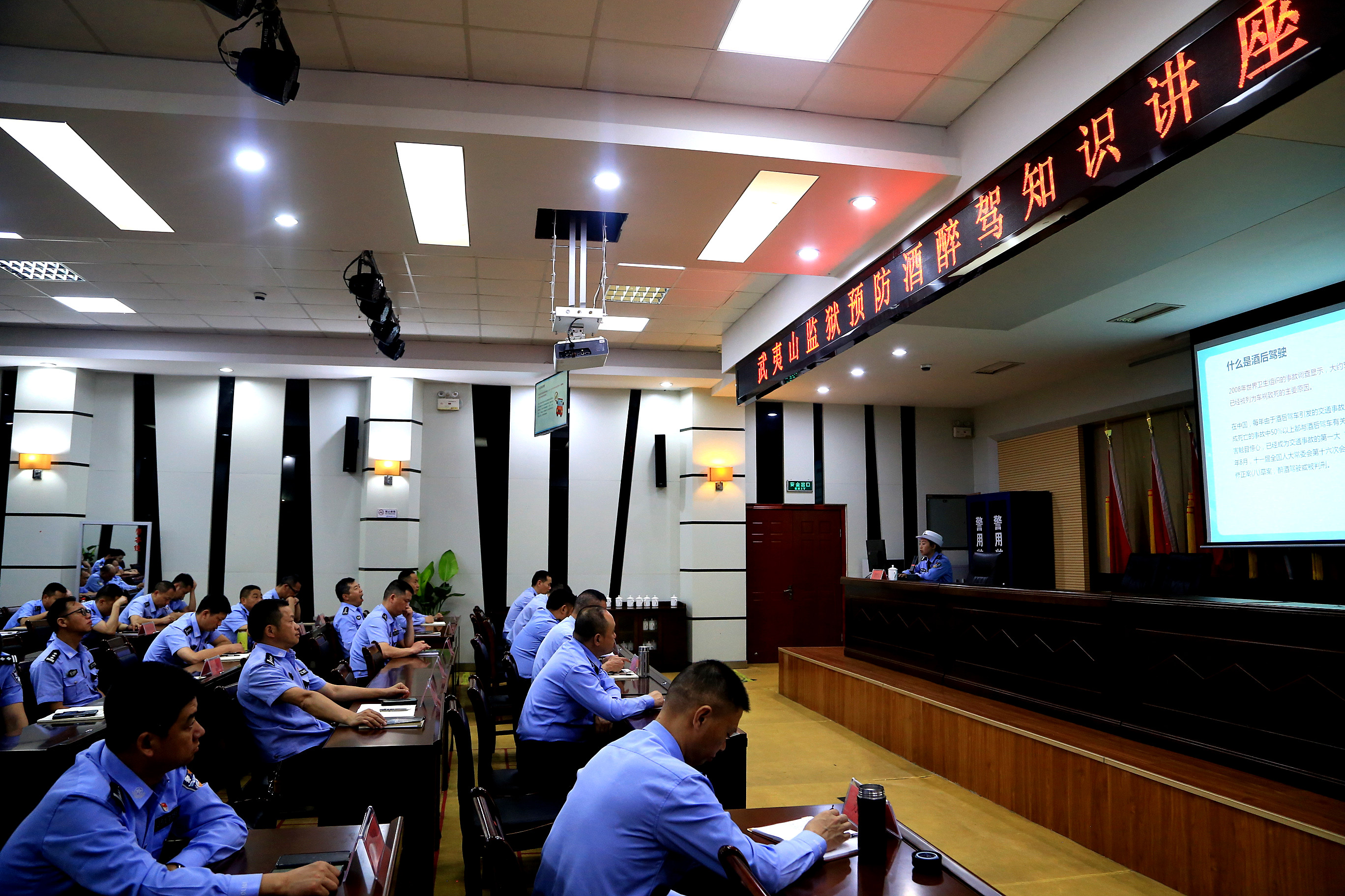 永安监狱邀请驻地公安交警来监授课,讲深讲透酒驾醉驾的危害,组织全员观看警示教育纪录片、纪委书记通报典型案例、党委书记上党课等,进一步教育引导全体民警职工对违反禁酒令甚至酒驾醉驾认识问题和思想根源的严重危害性。武夷山监狱邀请武夷山市公安局交警大队宣传员来监开展预防酒驾醉驾专题讲座。宣传员为大家详细解答了酒驾醉驾的定义、标准,并计算了酒驾醉驾的“经济账”“家庭账”“社会账”,分析了容易导致酒驾醉驾的几种心理,以案为例,让大家充分认识到酒驾醉驾的危害以及文明驾驶、安全出行的重要性和必要性。