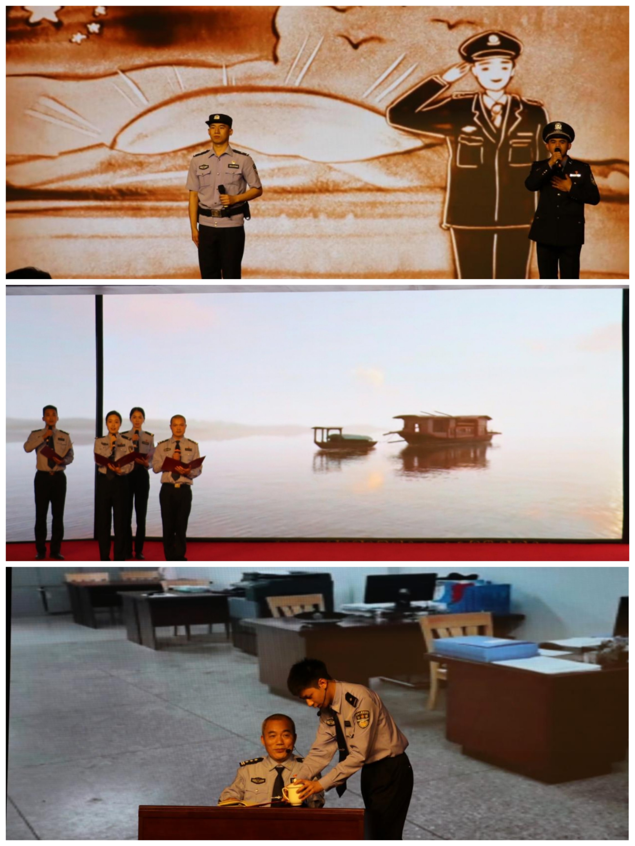全省首支监狱民警阿卡贝拉纯人声合唱团带来歌曲《燃烧》,在悠扬的旋律中,活动正式拉开序幕。《红船载梦 警徽映心》《长征星火照警途 警心向党践初心》《忠诚的誓言》《“绣”红旗》……精彩纷呈的“艺术党课”轮番上台,展现了新时代监狱人民警察忠诚担当、昂扬向上的精神风貌,彰显了他们扎根监管一线、践行初心使命的坚定信念。