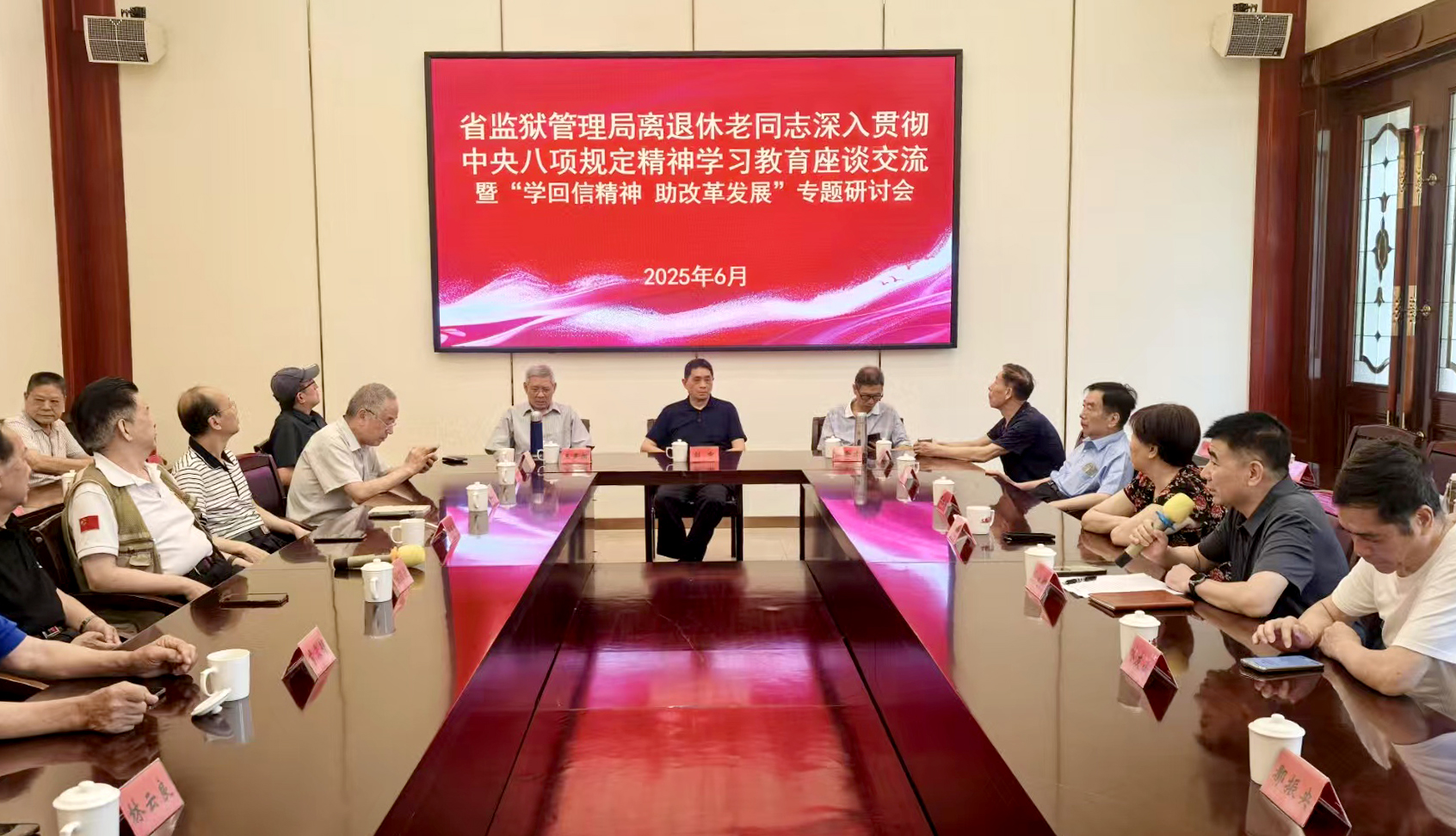为扎实推进离退休干部党员深入贯彻中央八项规定精神学习教育,引导离退休干部党员锤炼党性、严实作风、守好底线,6月10日至13日,省监狱管理局在闽清举办离退休干部党员深入贯彻中央八项规定精神学习教育读书班。局党委副书记、政委钟火阵到班看望慰问,局党委委员、政治部主任、直属机关党委书记吴邦辉作开班讲话,局机关离退休干部党员30余人参加读书班活动。