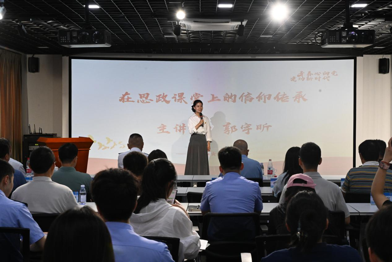 蝉鸣聒噪,难掩论道热忱。来自仰恩大学的3位思政教师逐一上台,聚焦“培养什么人、怎样培养人”,将党的理论转化为青年听得懂、记得住的“青春语系”。高校思政教师郭宇昕重点讲述了他们是如何将党的创新理论春风化雨,把红色基因融入育人血脉,带领学生重走革命故地,在实践课堂上让真理照进现实的故事。