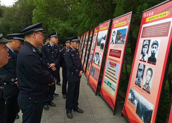 在宣传画展前,民警们认真学习源自于闽西的红色经典,重温革命时代党务楷模的先进事迹。