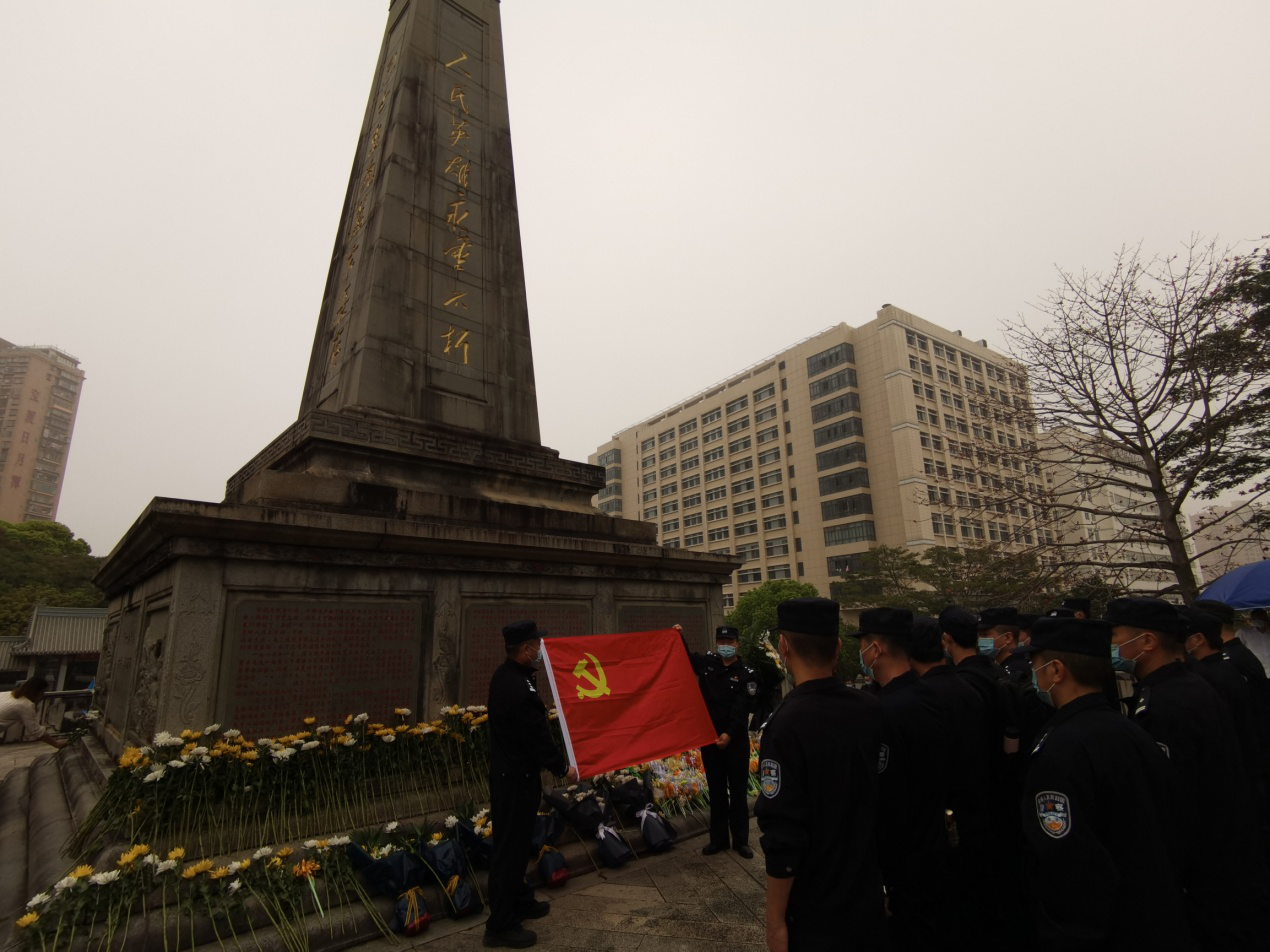 在闽中革命烈士纪念碑前,民警们庄严肃穆,向烈士敬献花圈,并集体默哀,寄托对革命烈士的无限哀思和崇高敬意。