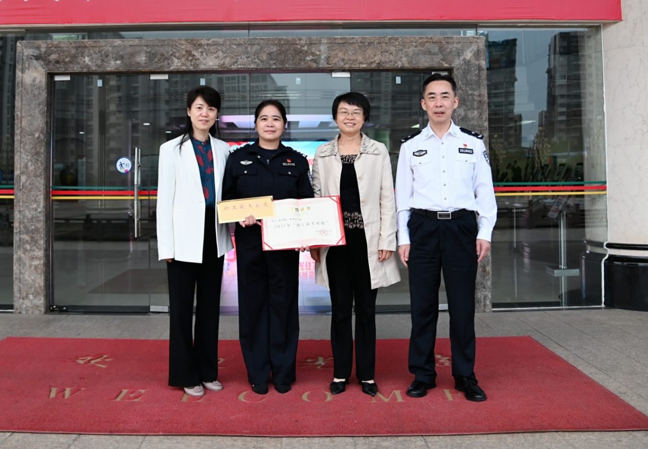 近日,南平市总工会副主席邱美丽、建阳区总工会常务副主席林芳到建阳监狱为民警程贵玉颁发了2021年全省“职工最美家庭”荣誉证书和门牌,监狱党委副书记、政委周震亚代表监狱党委向其表示祝贺。今天让我们走进这组家庭,共同分享这份荣誉和喜悦。
