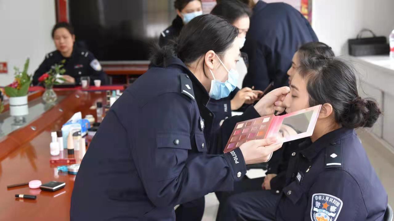 爱美之心,人皆有之。民警表示,化妆并不是为了取悦别人,而是取悦自己。“我们的工作时间比较紧凑,所以一块气垫粉底,一支口红和一根眉笔就能搞定妆容。”活动现场,民警用气垫粉扑在脸上轻拍几下,再画上英气的眉毛,涂上口红,两三分钟就完成了淡雅的妆容,不会占用太多时间,同时又能够让民警保持一整天元气满满。