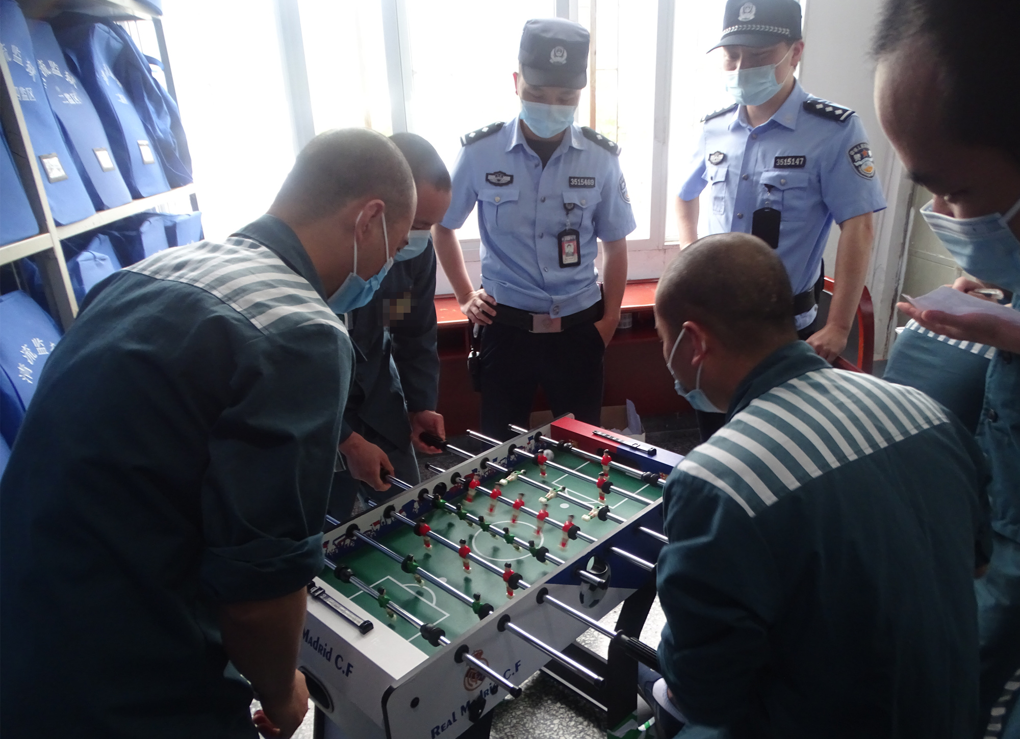 只见监舍走廊外,一张台式足球桌旁,两个号房的种子选手正在激烈角逐,一旁观看的罪犯不断给双方加油打气,时不时传来掌声和笑声。罪犯吴某说:“服刑以来,多次参加分监区组织开展的文化教育和团队活动,久而久之自己的心性改变了,不像以前那样暴躁和冲动。很感谢警官们的良苦用心,为了让我们学好、变好,真是费尽心思。”