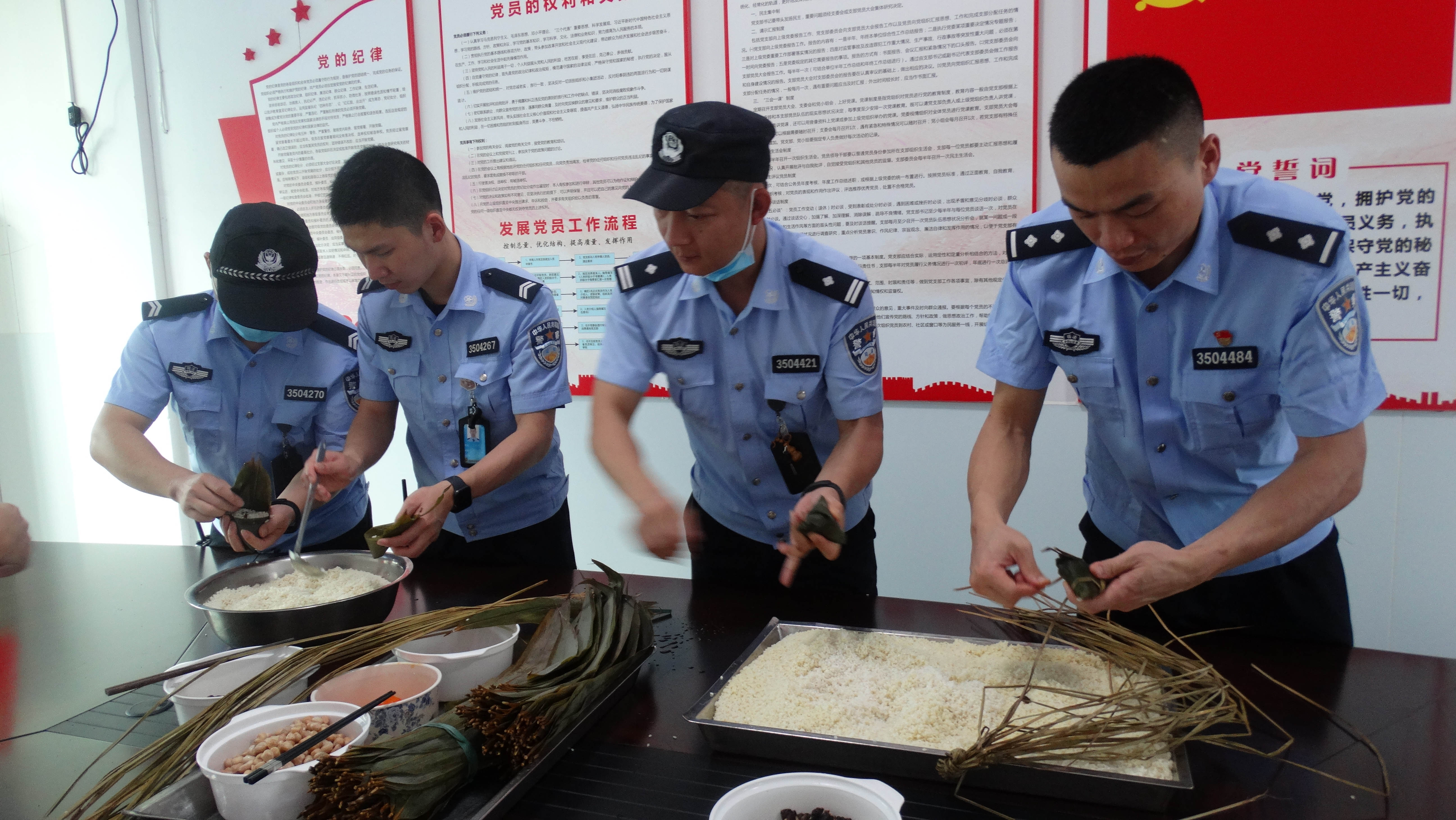 榕城监狱组织监内执勤组民警开展“粽香满狱园 粽情护平安”包粽子活动,感受端午节浓浓情意,鼓舞干劲,提振士气。活动中,民警认真好学,个个忙得不亦乐乎。虽然很多民警都是第一次包粽子,包得形状千奇百怪,但包含在里面的互帮、互助、团结、友爱一点不含糊。
