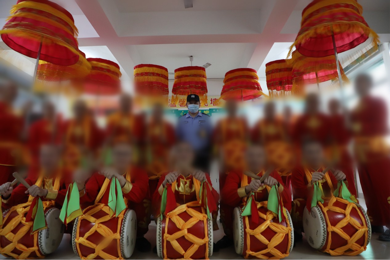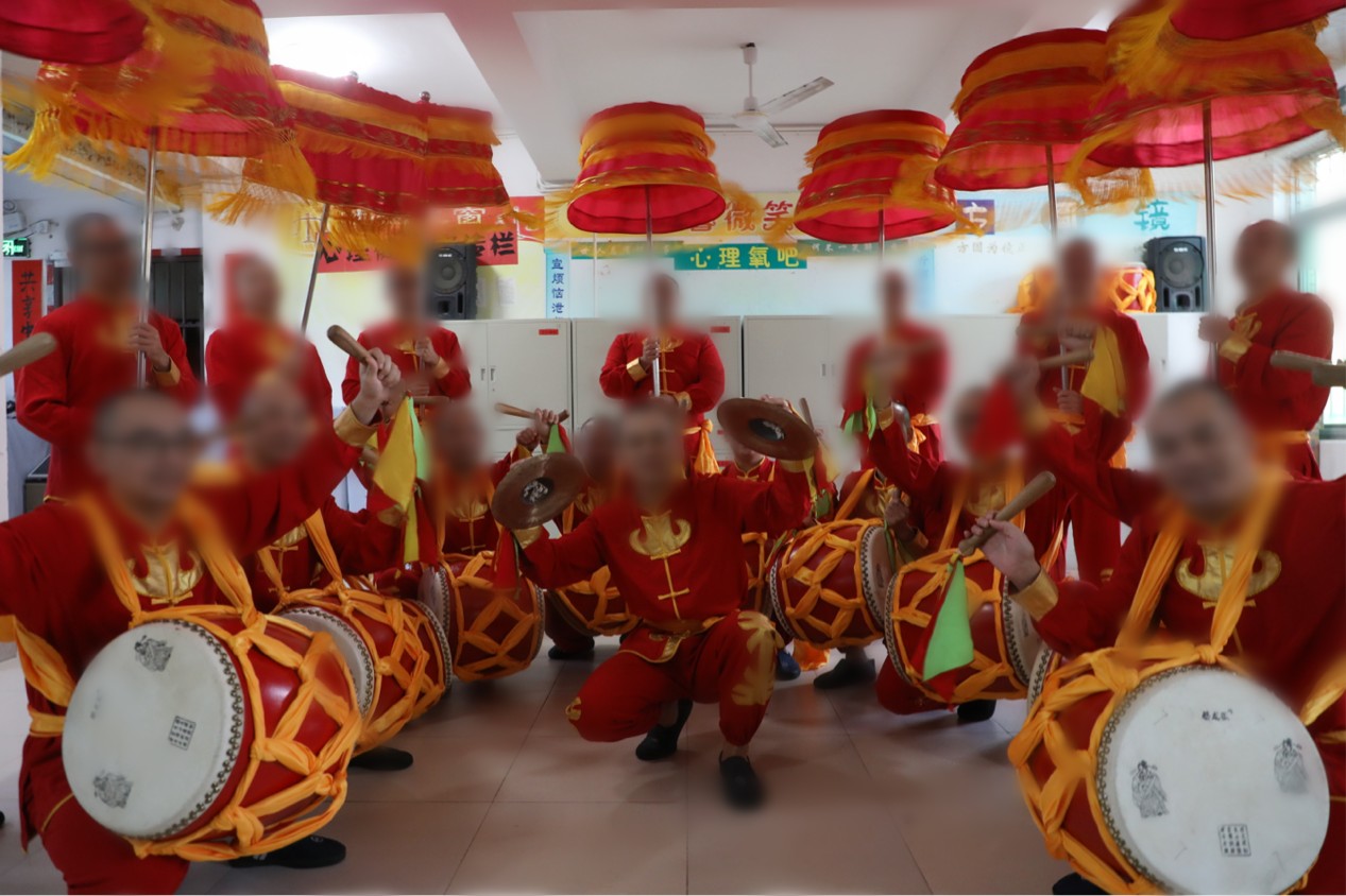 “咚咚锵,咚咚锵”,伴着一阵欢快明亮的锣鼓声,走进漳州监狱二监区五分监区,一支由罪犯组成的大鼓凉伞队正紧张有序地进行排练。