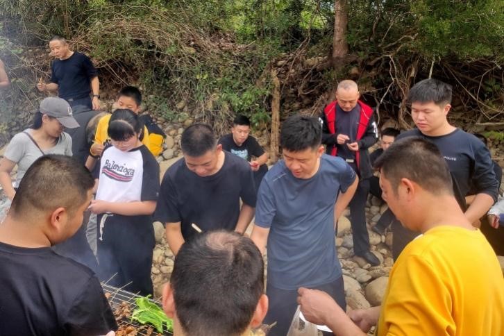 结束慰问活动后,在支部书记梁启东的带领下,党员民警们来到了溪旁,暂时告别紧张的工作旋律,体验着“自己动手丰衣足食”的乐趣,交流着生活和工作中的趣事,欢声笑语随着缕缕炊烟萦绕在空中,其乐融融。