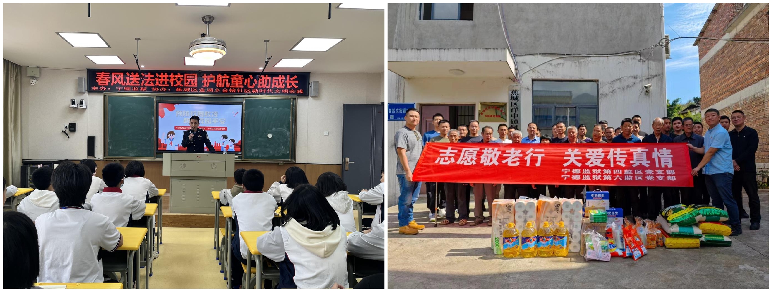 此外,监狱以金溪社区“特殊楼栋”和蕉城区第二实验学校为试点,围绕老弱群体和未成年人群体,组织党员力量精准帮扶。“我们精心选取结对支部,按照1个党支部主动认领1-2名特殊困难对象的形式,组织党员进行‘一对一’精准帮扶。同时,启动‘正苗’计划,成立‘春雷’法治宣讲轻骑兵队伍,让优秀民警担任法治辅导员,帮助学生预防校园霸凌、远离犯罪边缘。”宁德监狱政治处党支部书记、副主任、四级高级警长杨文彬介绍。