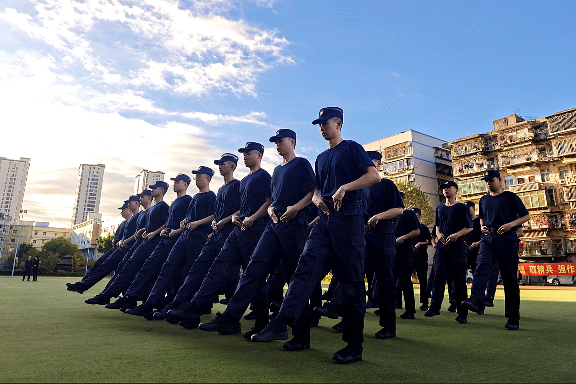 队列训练中,他们眼神坚定,身姿挺拔,力求每个动作精准到位。尽管有些新民警肢体僵硬、动作不协调,但是大家都能咬紧牙关,反复练习。教官们严格要求,目光如炬,纠正每一个偏差,新民警们也用汗水浇灌自己,回报教官们的辛苦教导,用坚持书写担当,在训练场上不断突破自我,向着合格警察的目标奋勇迈进。