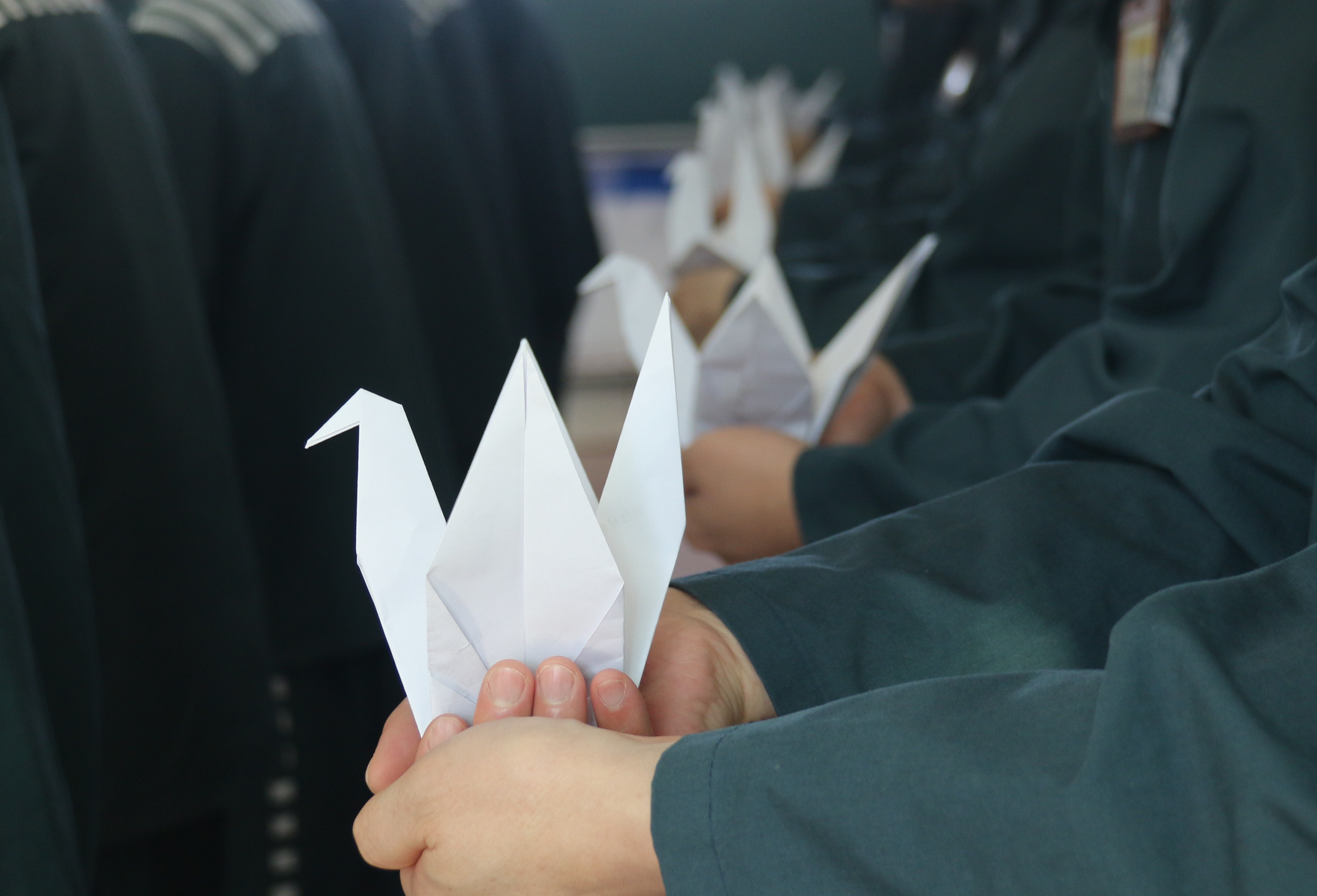 与此同时,厦门监狱开展“千纸鹤载悔意”主题活动,组织罪犯书写《致先烈的一封信》及忏悔语录,并亲手折叠千纸鹤寄托哀思。同时,设置“追思墙”集中展示作品,罪犯通过诵读忏悔书、现身说法等环节,引导他们在情感宣泄中强化赎罪意识,激发改造内生动力。