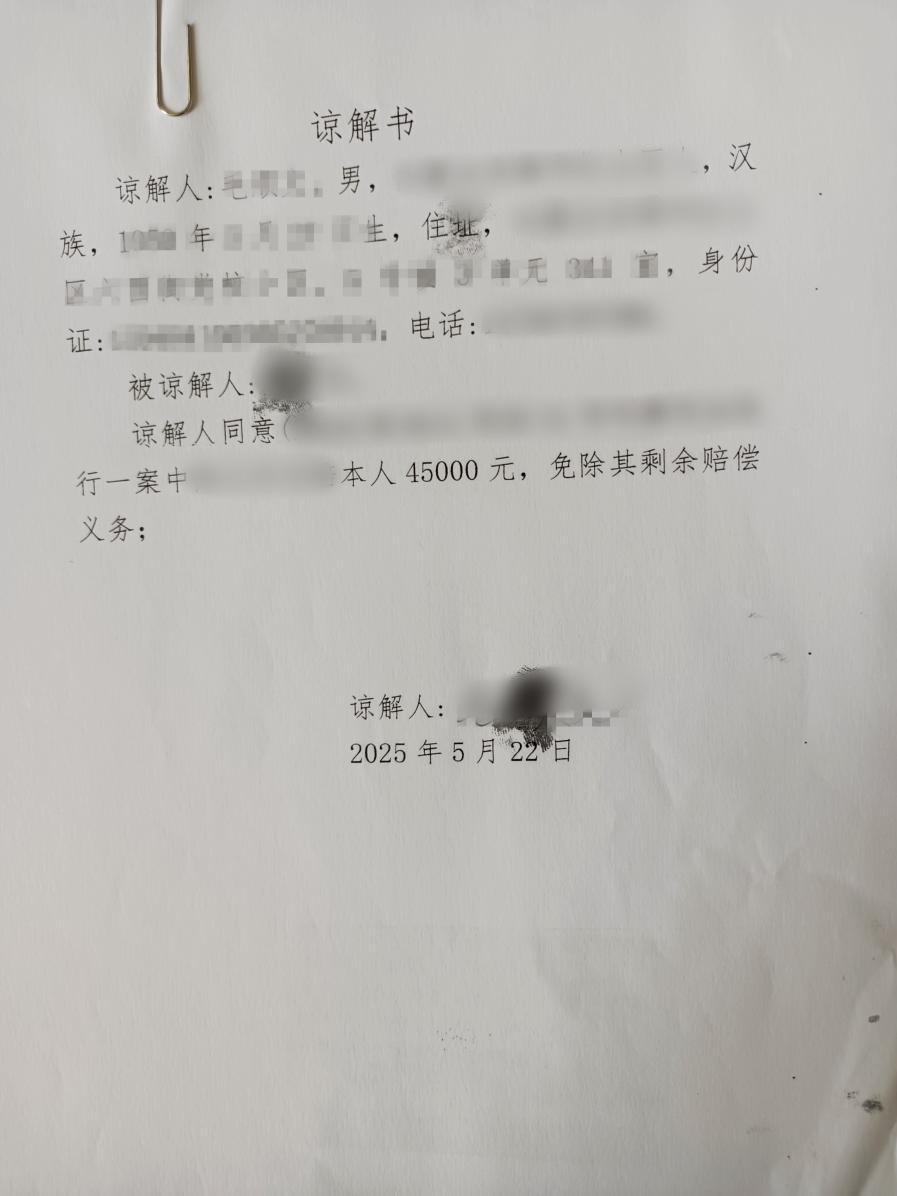 在经办法官见证下,陈某家属代陈某向被害者赔偿共计4.5万元,同时缴纳罚金5万元。随后,监狱民警拨通了毛某的电话,仔细核实确认钱款是否已顺利收到,“收到了,我希望他出狱后可以遵纪守法,别再犯罪了。”经过民警再三沟通协调,毛某逐渐放下顾虑,接受这笔赔偿款和道歉。执行局经办法官也依据实际执行情况出具了结案证明书。