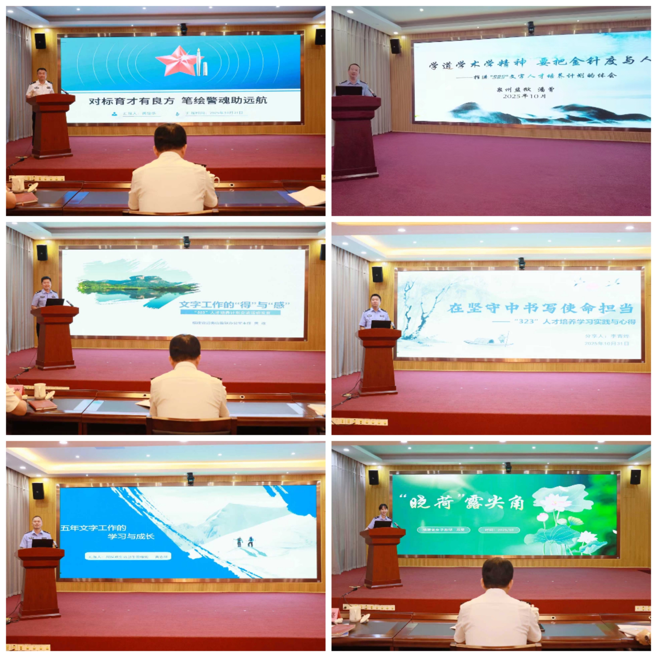 现场,通报了全系统文字工作“323”人才培养计划实施情况。大家认真聆听了“323”人才培养计划代表的精彩分享,深刻感受福建监狱系统在对外宣传和文字人才培养方面的蓬勃生机与创新活力。
