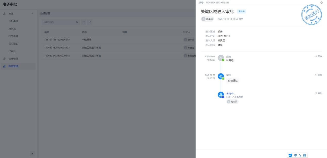 借助与资产库存、门禁考勤、档案管理等核心业务系统的无缝对接,电子审批系统实现了“数据驱动业务”。数据在系统间“无缝流转”,不仅提升了审批效率,更增强了管理的精准性与风险防控能力。此外,系统遵循权限最小化原则,实现操作全留痕、数据防篡改,筑牢安全屏障。
