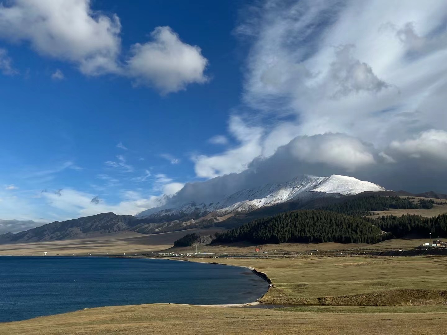 赛里木湖的风光,是广袤与澄澈的交织。湖水湛蓝如宝石,与远处雪山、近处草原相映,构成绝美的画卷。微风拂过湖面,漾起层层涟漪,也吹动了草原上的牧草,那是大自然最灵动的笔触,描绘出雄浑又不失秀美的边疆盛景。
