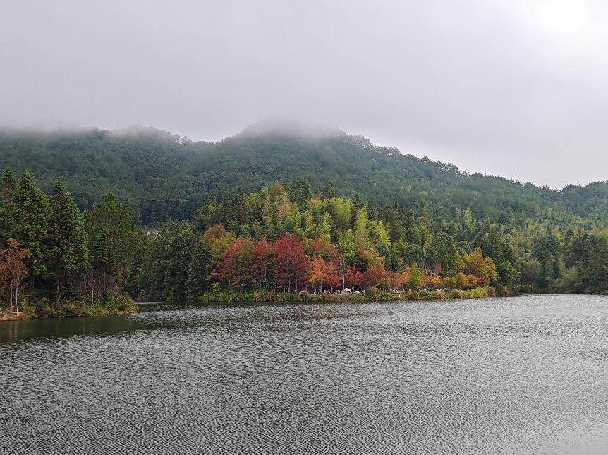 湖畔的树木,是秋日里最慷慨的画师。叶片由初秋的青翠渐次染上金黄,又从金黄中晕染出深沉的绯红,仿佛是大自然打翻了调色盘,让色彩在枝头肆意挥洒、尽情交融。黄绿相间的叶儿在枝头摇曳生姿,有的如金色的蝴蝶,似欲展翅翩跹;有的似温润的碧玉,执着地守护着最后的生机。它们层层叠叠,交织辉映,共同勾勒出一幅幅令人心醉神迷的秋日长卷,每一笔都充满了生命的诗意与绚烂。