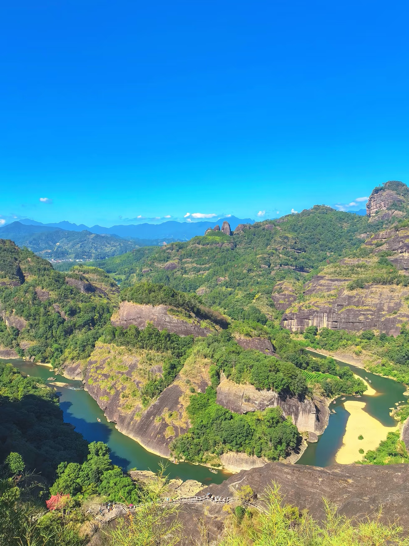 武夷山天游峰,享有“武夷第一险峰”之誉。它巍然耸立,登顶之路蜿蜒于峭壁之上。立于峰顶的眺望台,宛如置身仙境,可将壮丽的九曲溪全景尽收眼底。云海翻腾时,群峰若隐若现,宛如一幅泼墨山水画,是体验武夷山水魅力的精华所在。