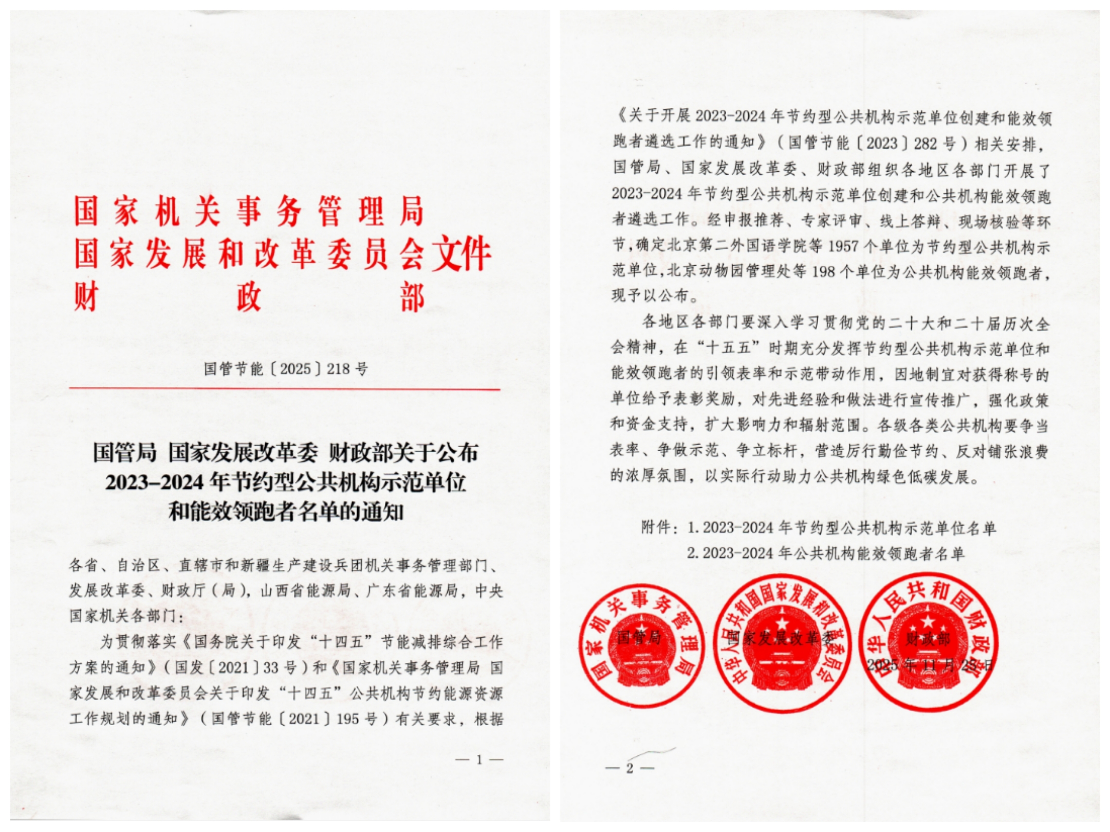 近日,国家机关事务管理局、国家发展和改革委员会、财政部联合公布2023-2024年节约型公共机构示范单位名单和2023-2024年公共机构能效领跑者名单。经材料初审、专家评审、复核答辩、现场核验等流程,共评选出1957家节约型公共机构示范单位,198家公共机构能效领跑者。