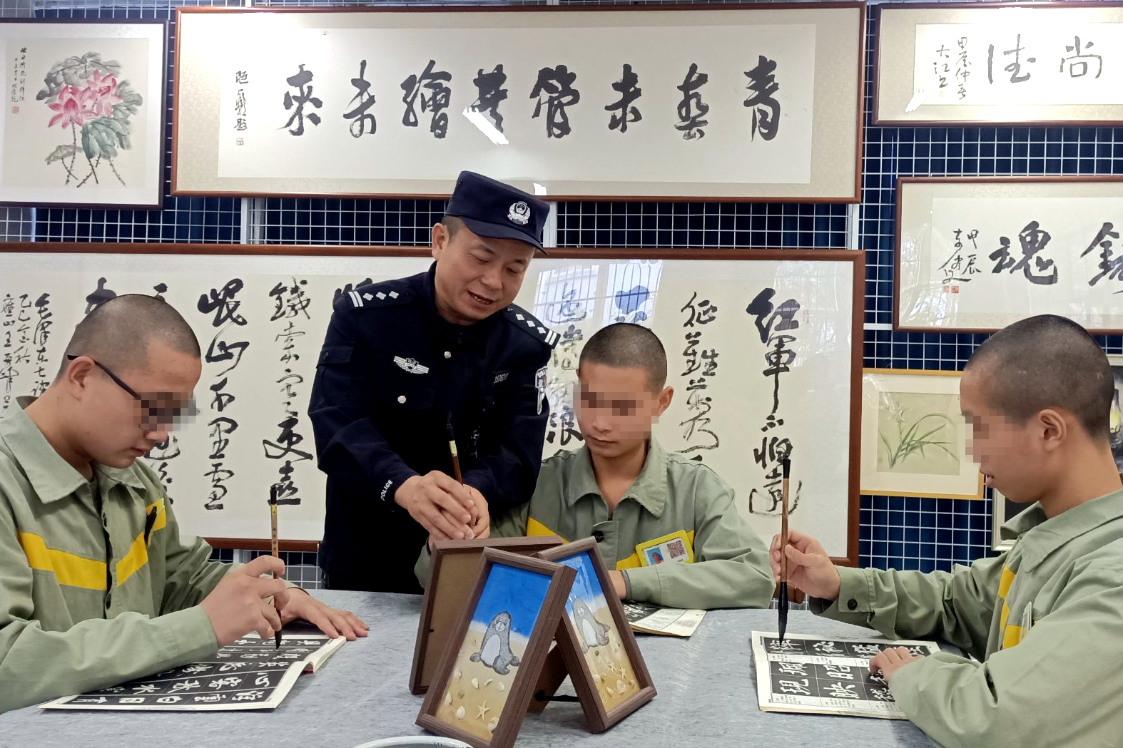 与刻刀的刚硬不同,民警王奇峰的“毛笔”带来的是柔软与浸润。在他的书法课程中,墨香弥漫。未成年犯们屏息凝神,在横平竖直间学习规矩,在一撇一捺中体会包容。书法练习是漫长的修身过程,王奇峰通过教导他们“字如其人”,将守法、明礼、静心的理念潜移默化地注入其心田。